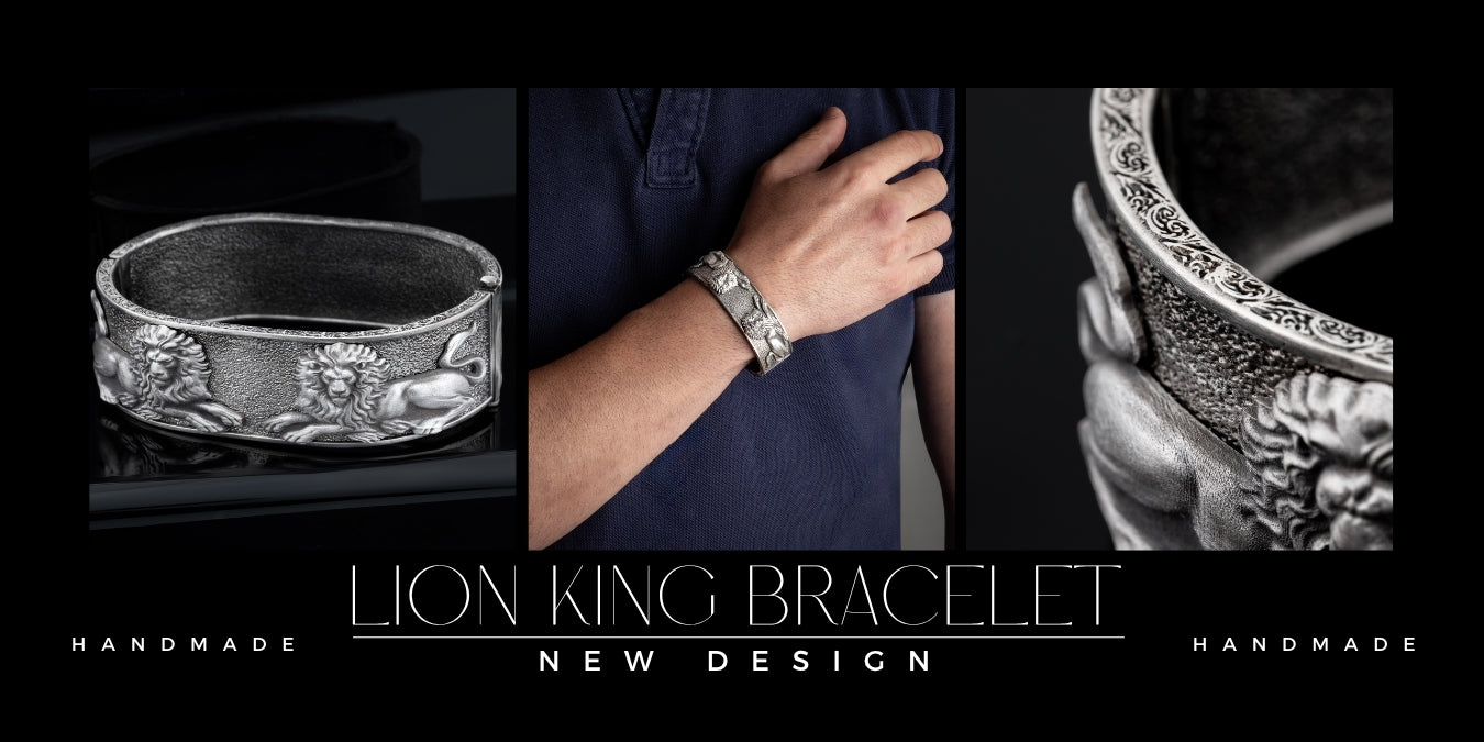 Lion Head Shield Bracelet in 925K Sterling Silver | Majestic Strength Symbol Jewelry For Men