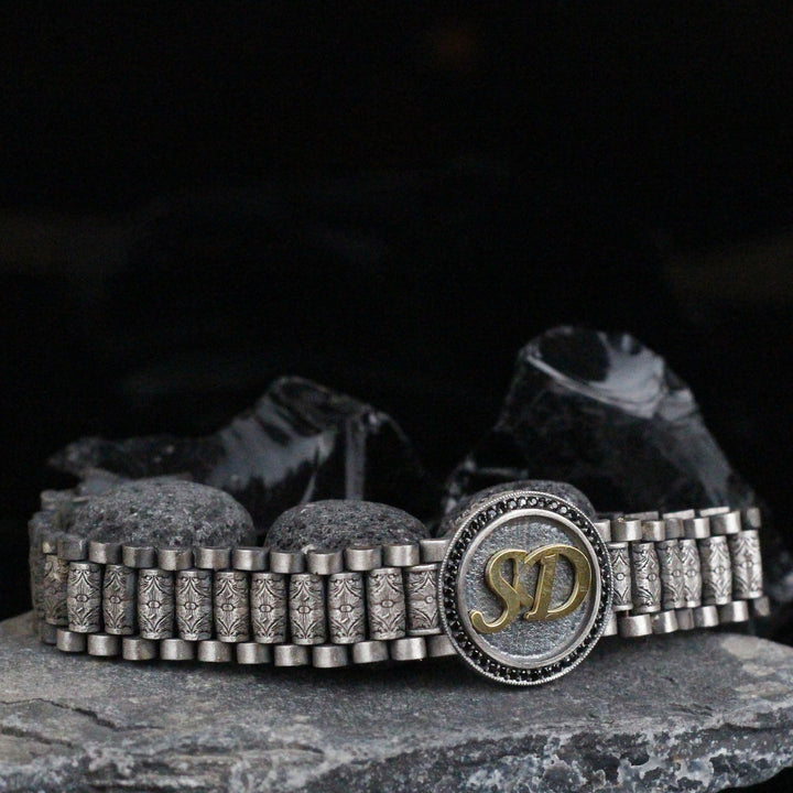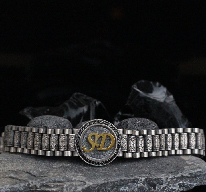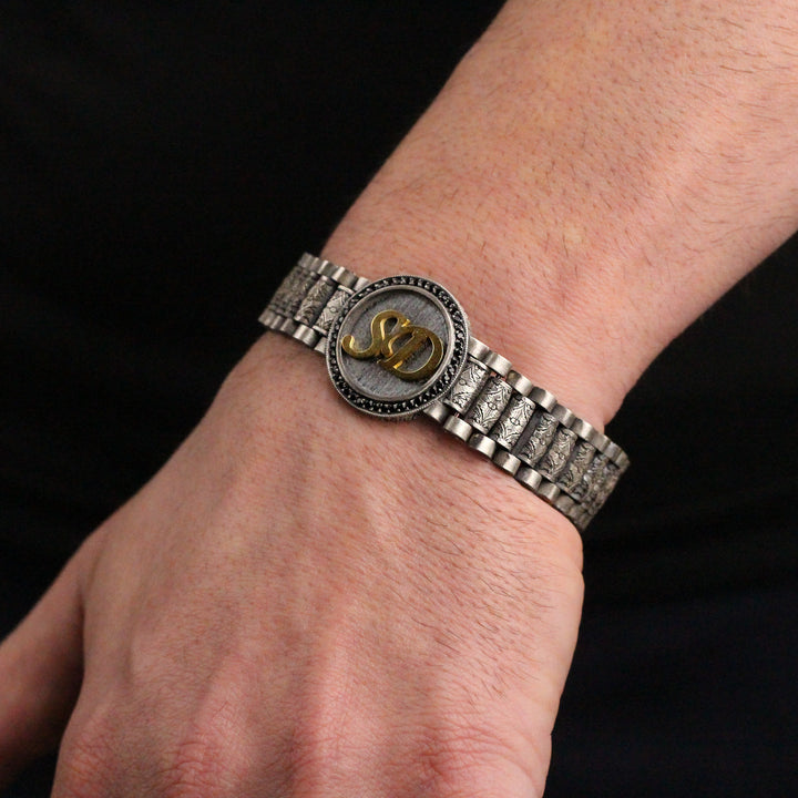 Custom Sterling Silver Bracelet with Personalized Initials | Customized Jewelry Gift for Men