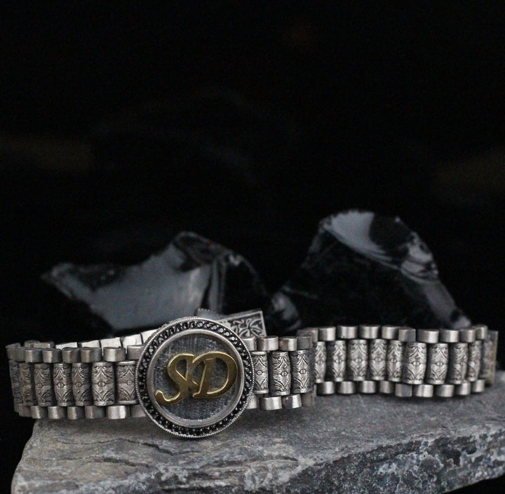 Create a truly one-of-a-kind piece with our Custom Sterling Silver Bracelet featuring your chosen initials in an elegant design. Handcrafted with care and precision, this bracelet combines artistry with personal significance. Perfect as a gift for loved ones or as a timeless addition to your jewelry collection, this bracelet reflects your individuality and style.