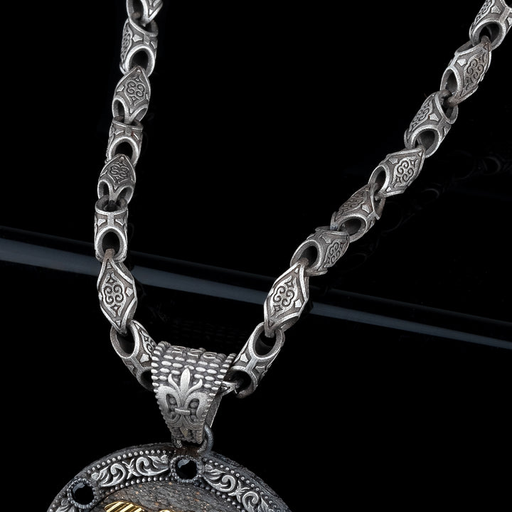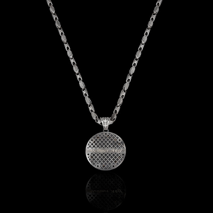 Elevate your style with this handmade sterling silver medallion necklace for men, designed with a unique custom chain that sets it apart from ordinary jewelry.