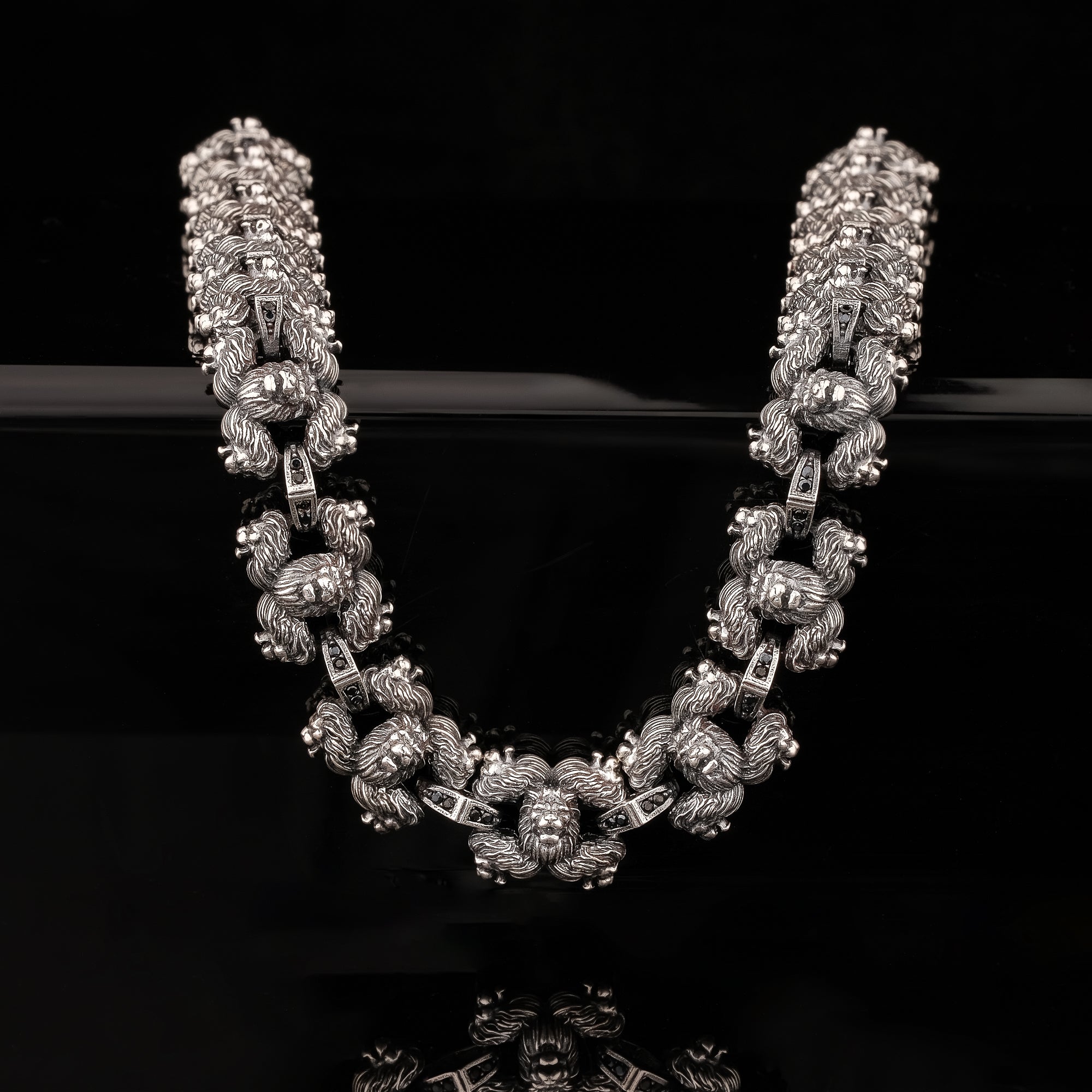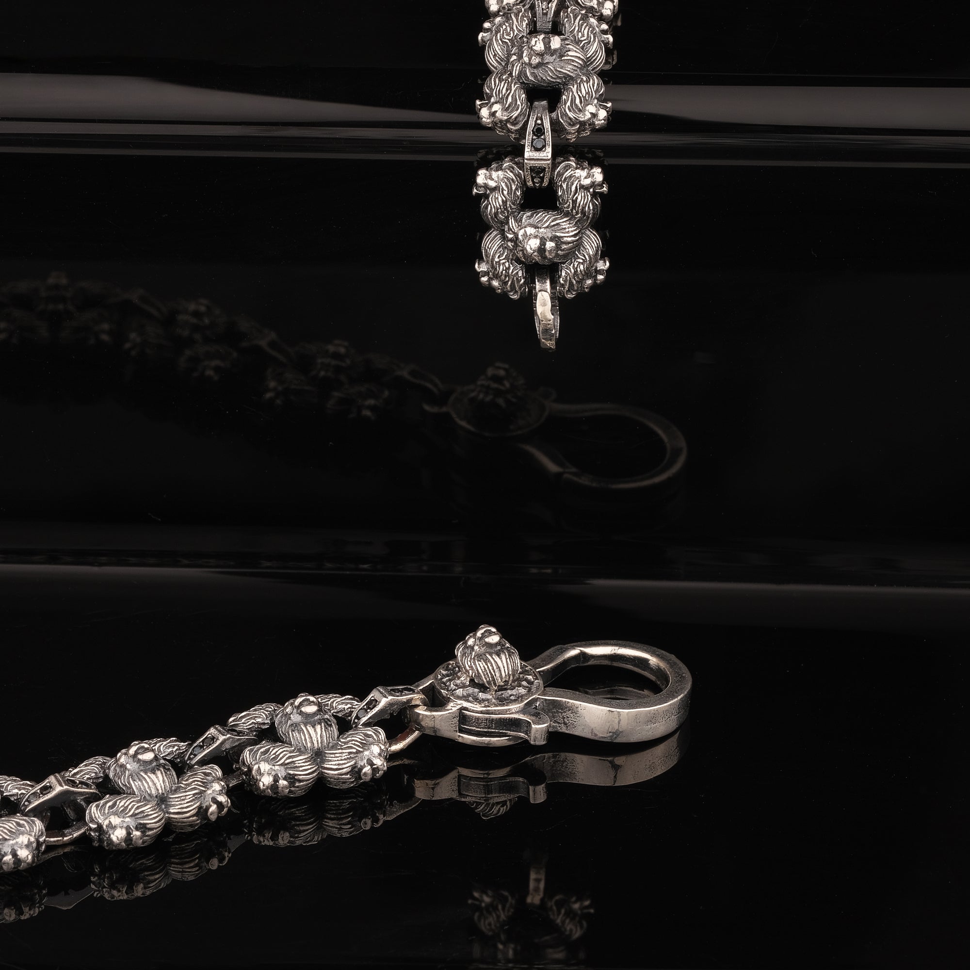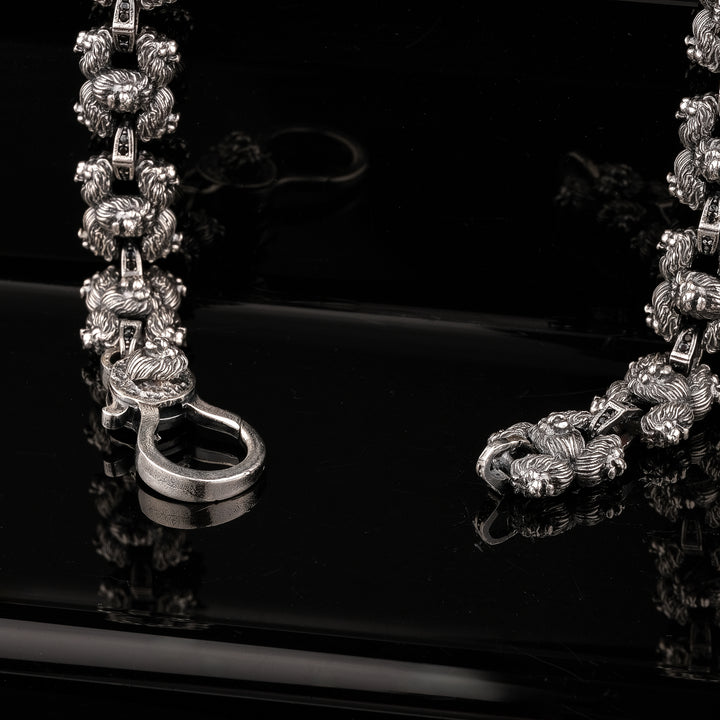 Elevate your style with this Handmade Sterling Silver Lion Head Chain Necklace for Men, a bold statement piece designed for those who embody courage, power, and leadership. Every link of the chain is meticulously crafted with five detailed lion heads, making this necklace a truly unique work of art that stands out from ordinary jewelry.