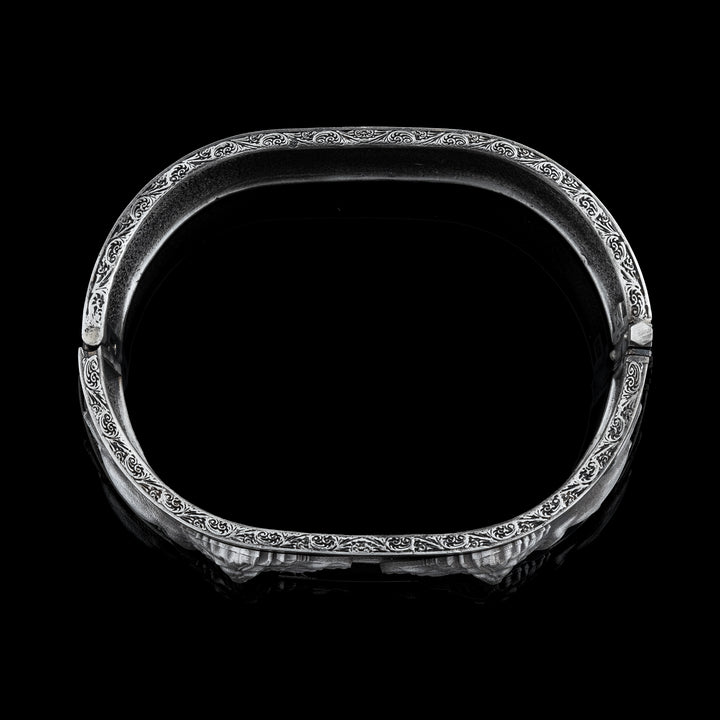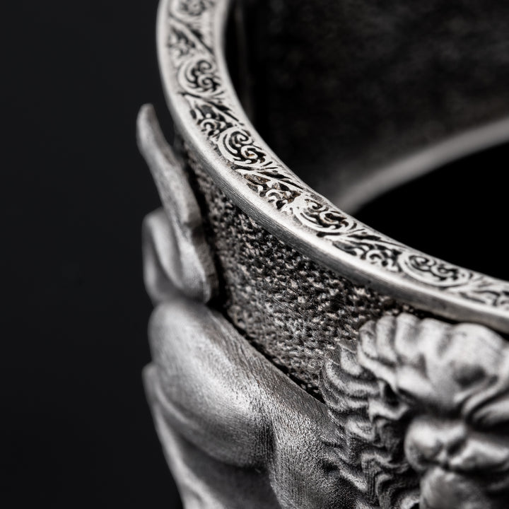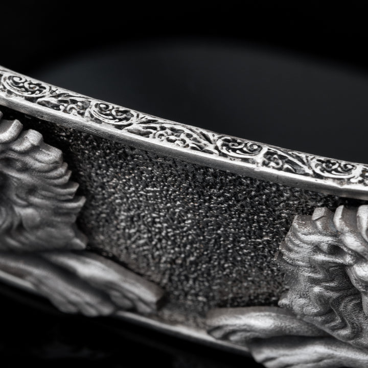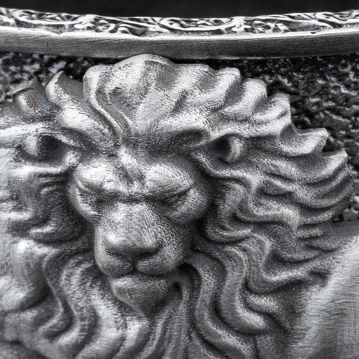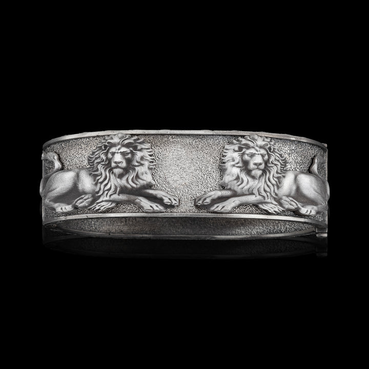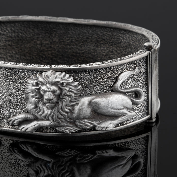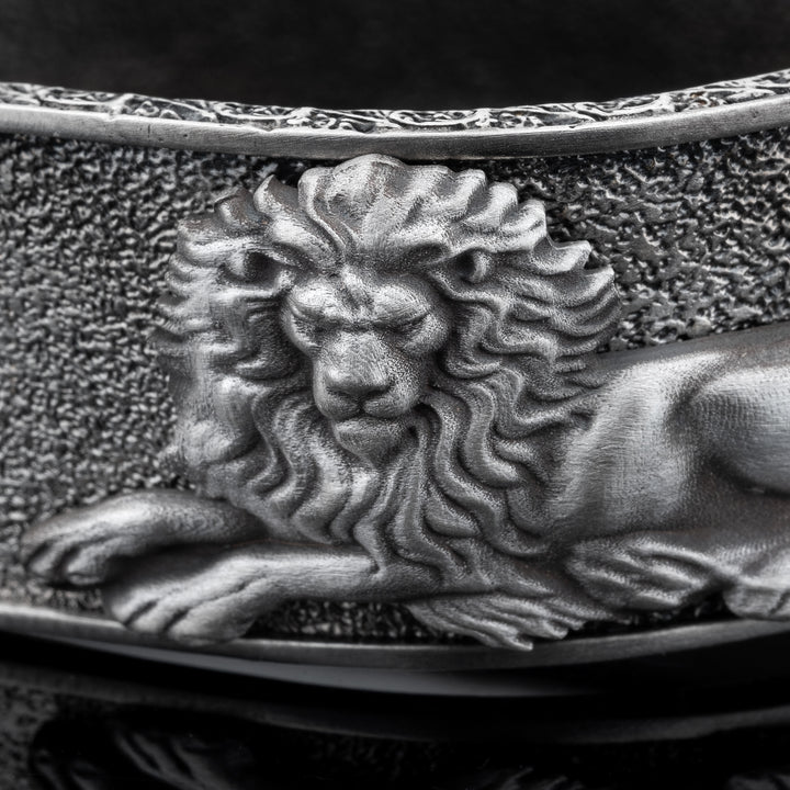 Men’s Sterling Silver Lion Bracelet – Bold Handcrafted Cuff with Reclining Lion Motifs