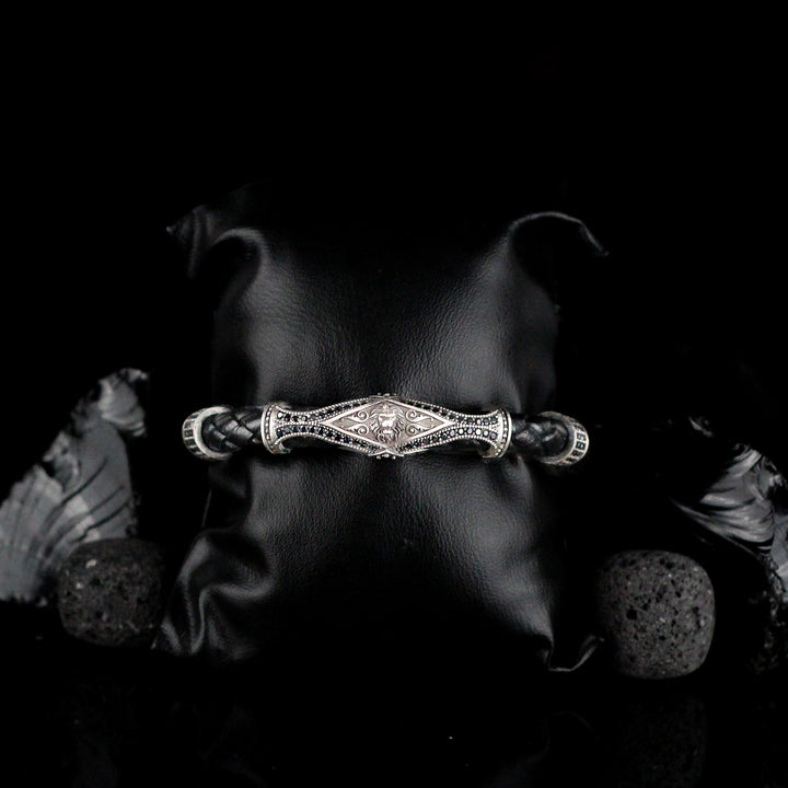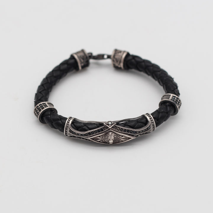 Command attention with this Sterling Silver and Leather Men's Bracelet, featuring a bold lion motif as its centerpiece. Designed with premium braided leather and 925K sterling silver, this bracelet is adorned with sparkling zircon accents, combining rugged durability with a regal aesthetic. Perfect for men who value strength, leadership, and timeless style, this accessory is ideal for both casual and formal looks.