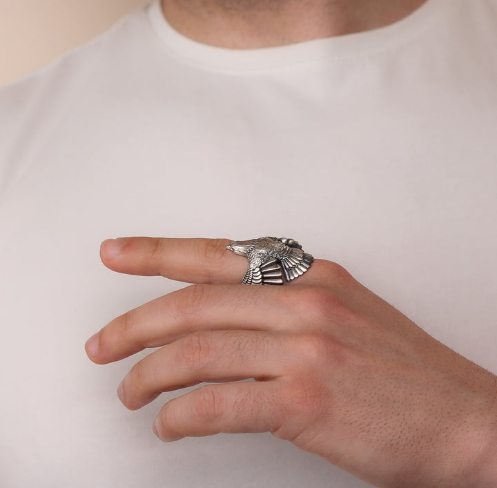 Sterling Silver Winged Eagle Ring for Men | Large Majestic Eagle Ring