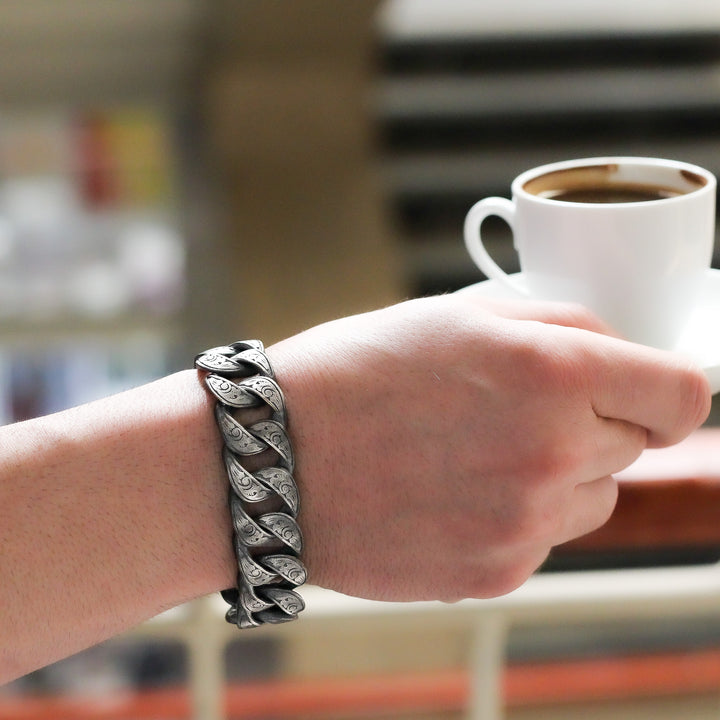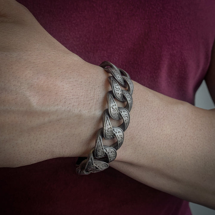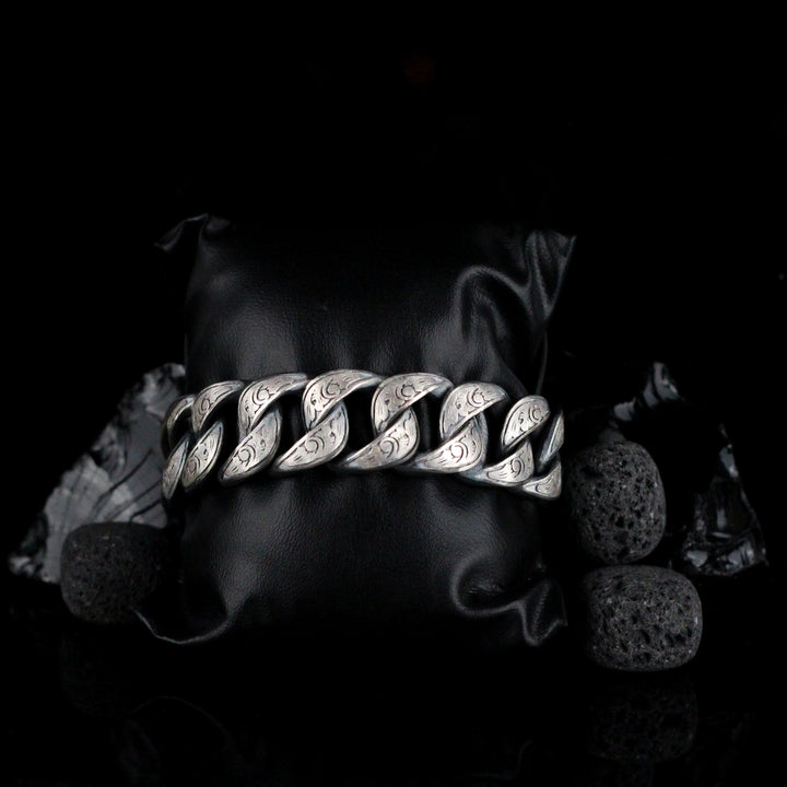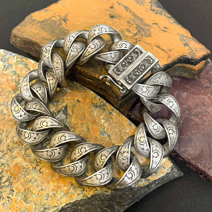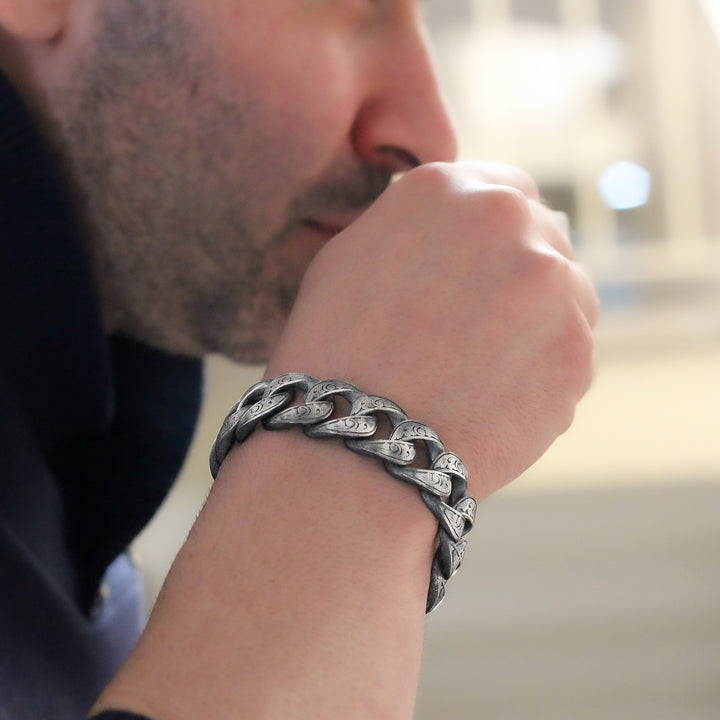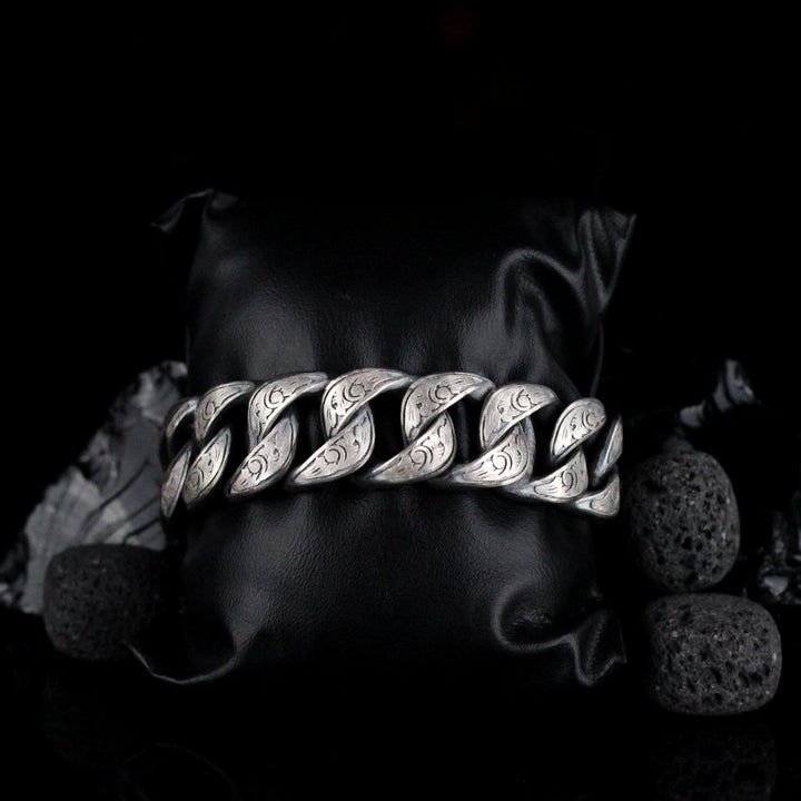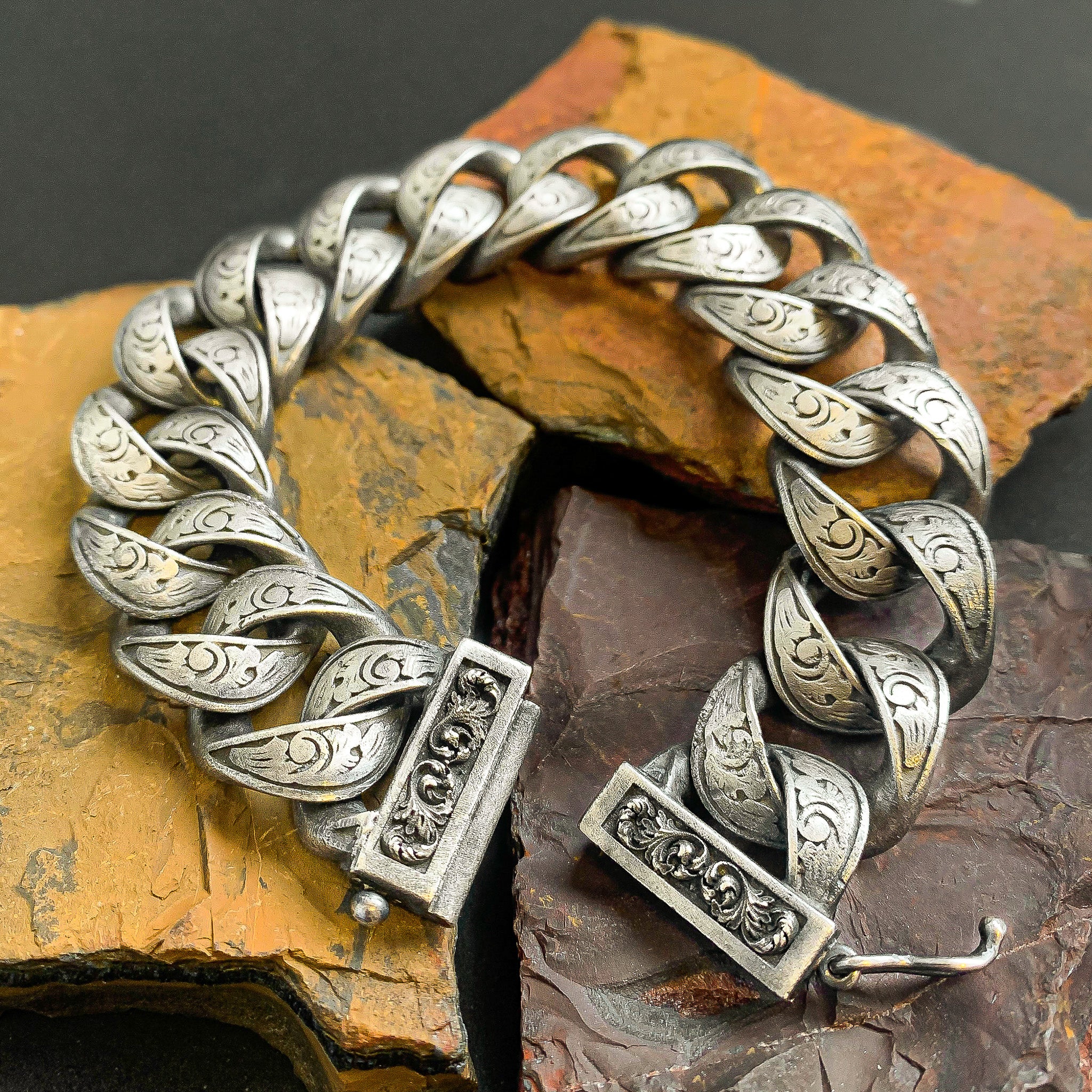 Sterling Silver Men's Engraved Chain Bracelet | Rugged and Distinctive Design
