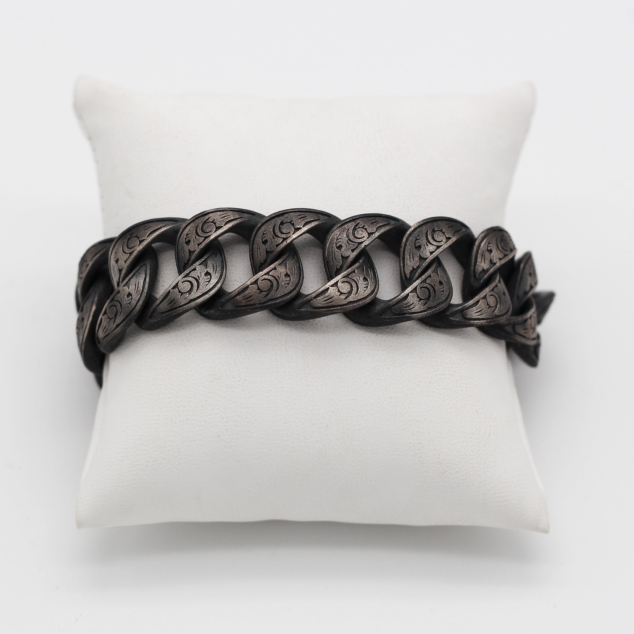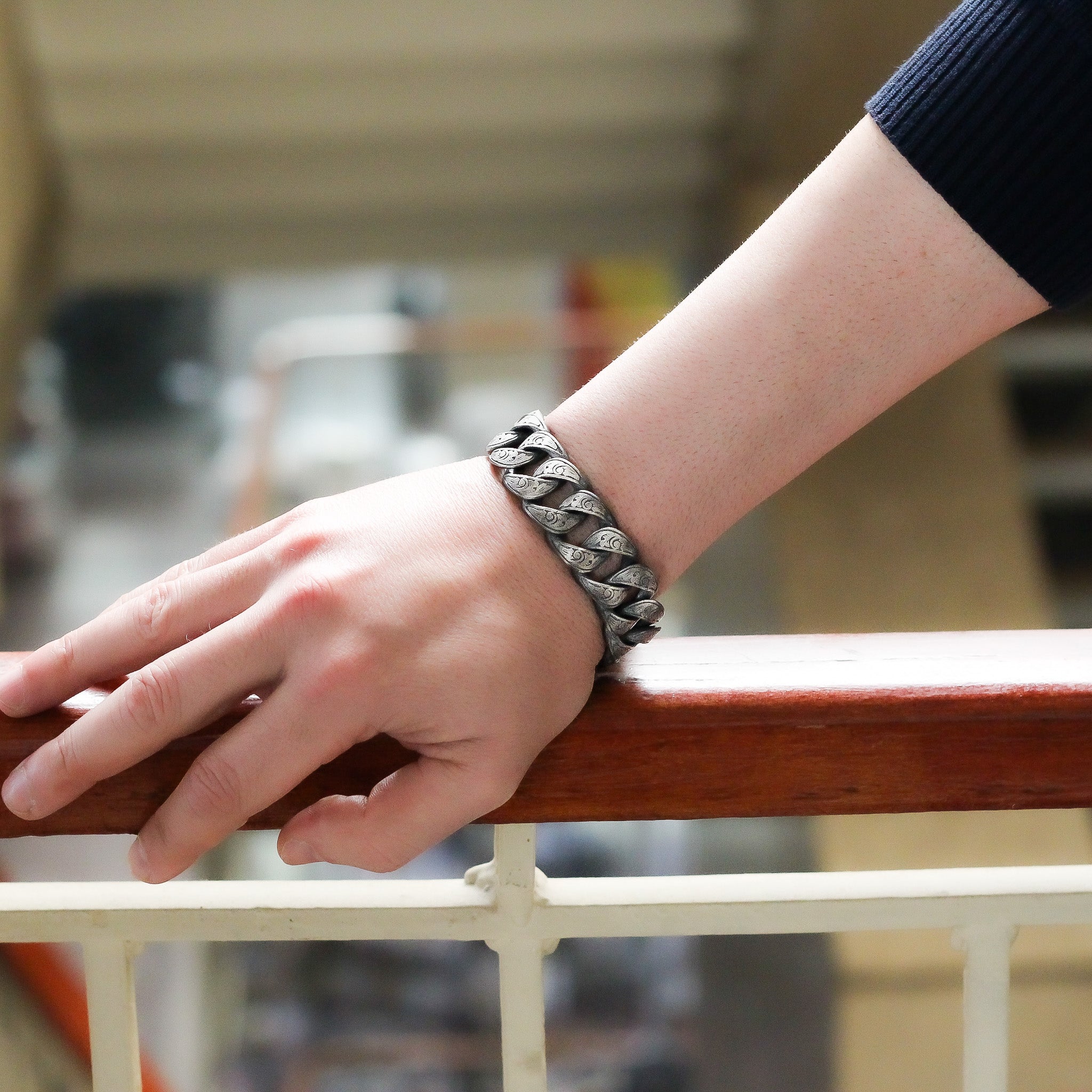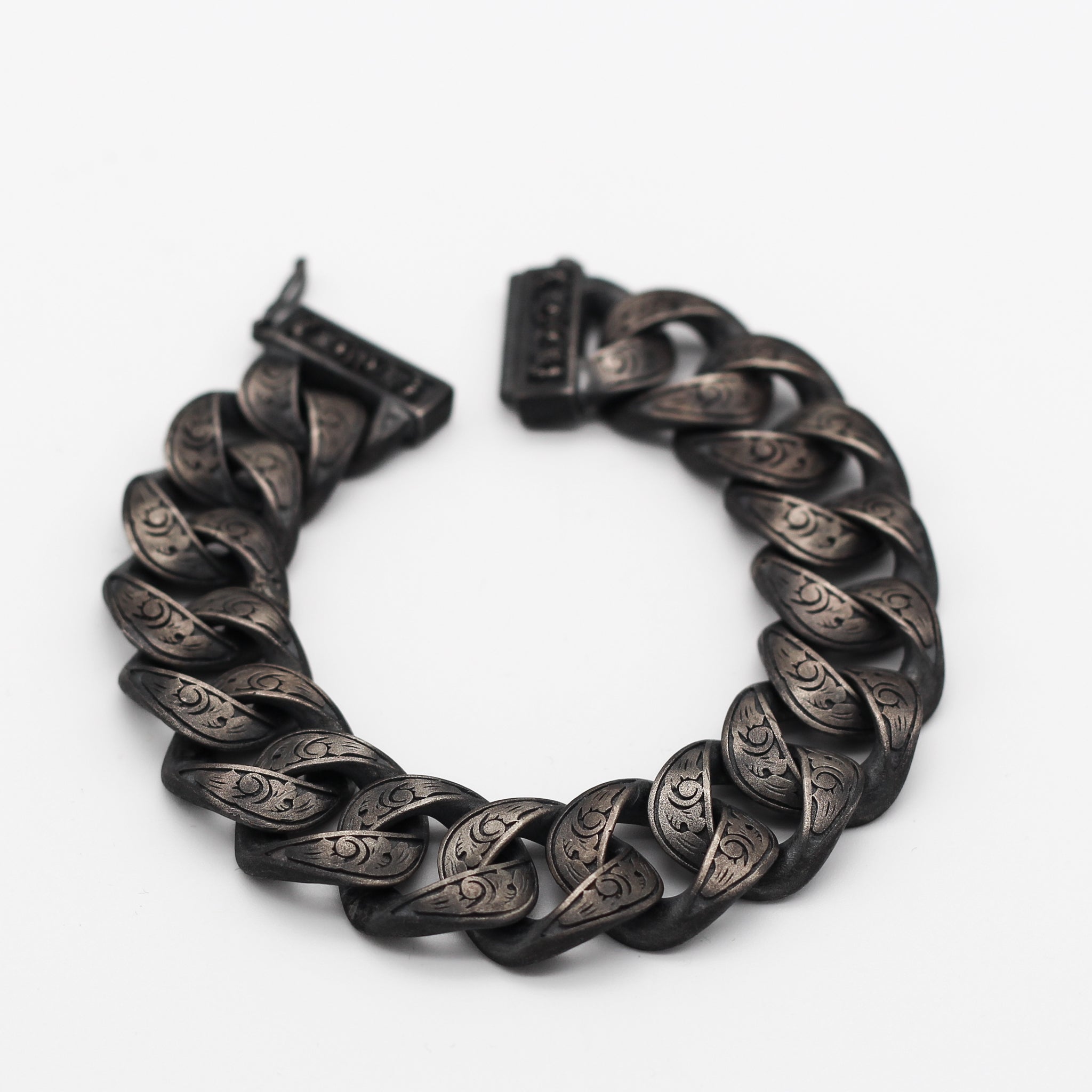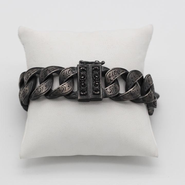Sterling Silver Men's Engraved Chain Bracelet | Rugged and Distinctive Design