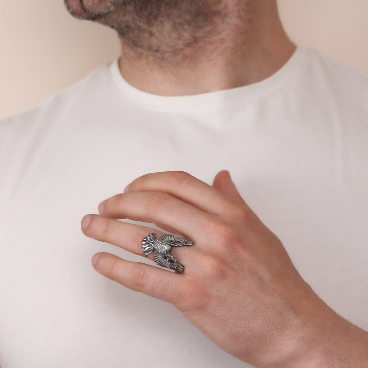 Harness the wisdom of the night with the Sterling Silver Owl Ring, a bold accessory designed for men who value intelligence, awareness, and individuality. Featuring a finely detailed owl motif, this handcrafted piece embodies mystery and insight while adding a strong, stylish edge to your look. Made from premium 925 sterling silver and finished with oxidized details to highlight the engravings, it’s a meaningful and striking ring for daily wear or special occasions.