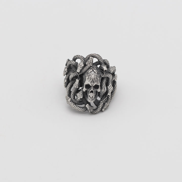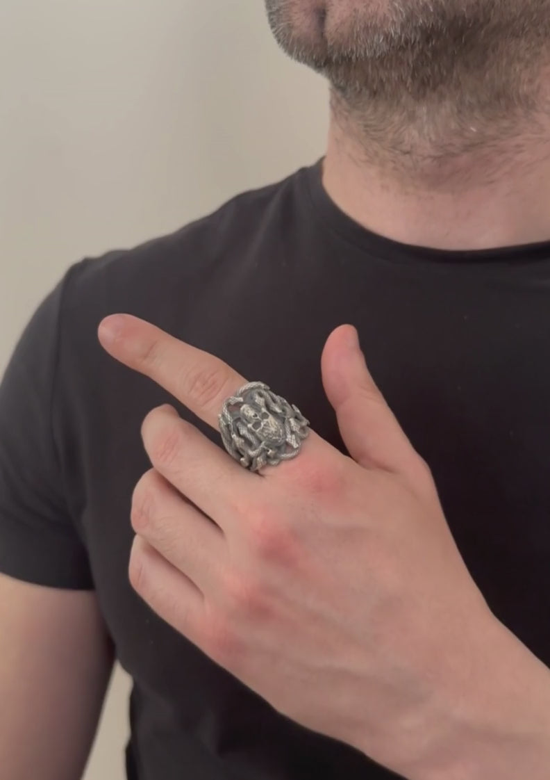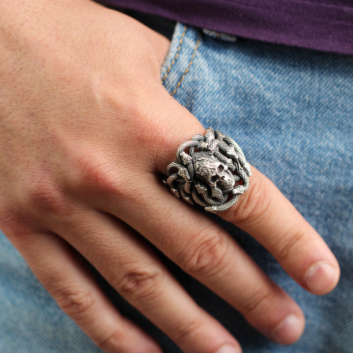 Sterling Silver Snake and Skull Ring for Men | Bold and Symbolic Gothic Ring for Men