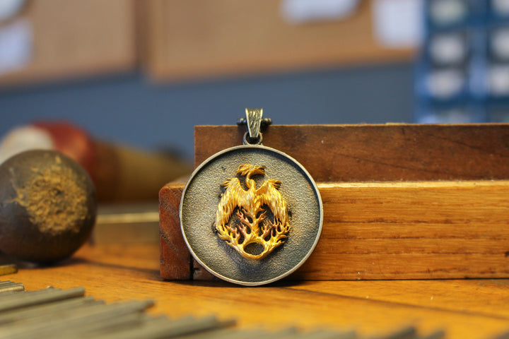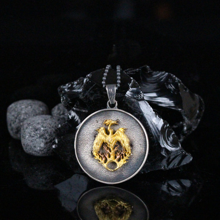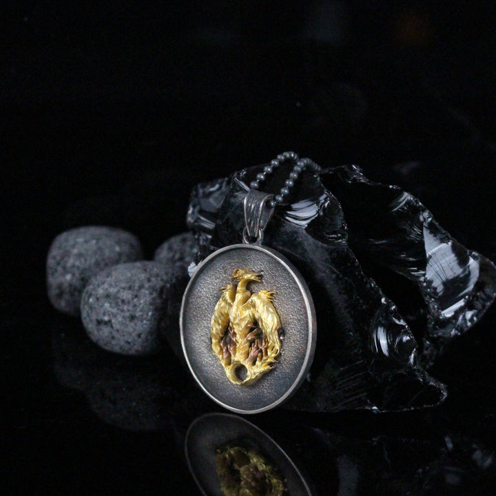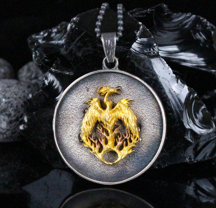 Phoenix Fire Bird Necklace in Sterling Silver | Mythological Spiritual Pendant