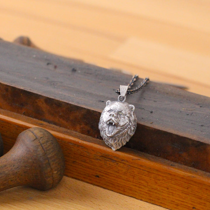 Roaring Bear Charm Necklace, Viking Bear Necklace