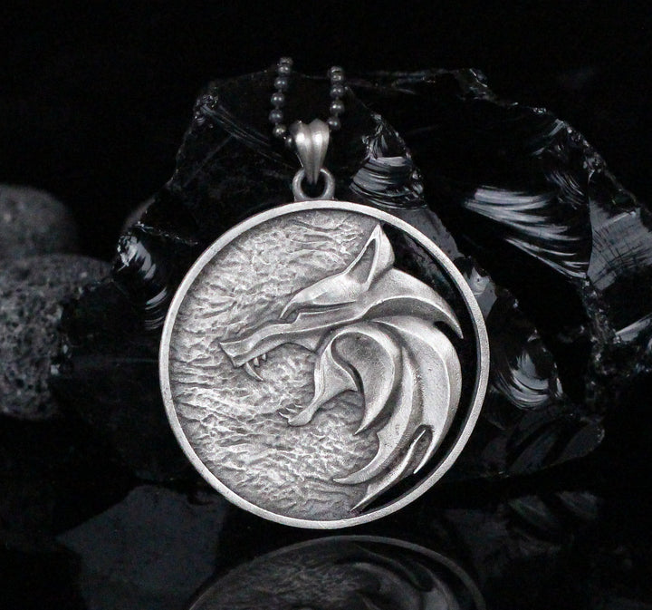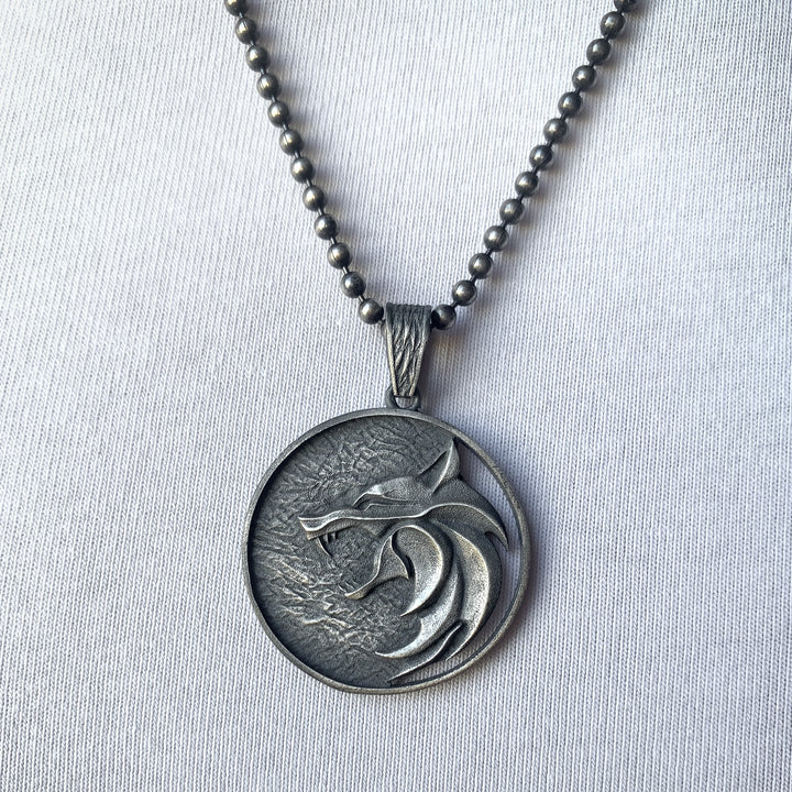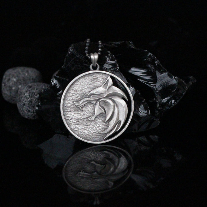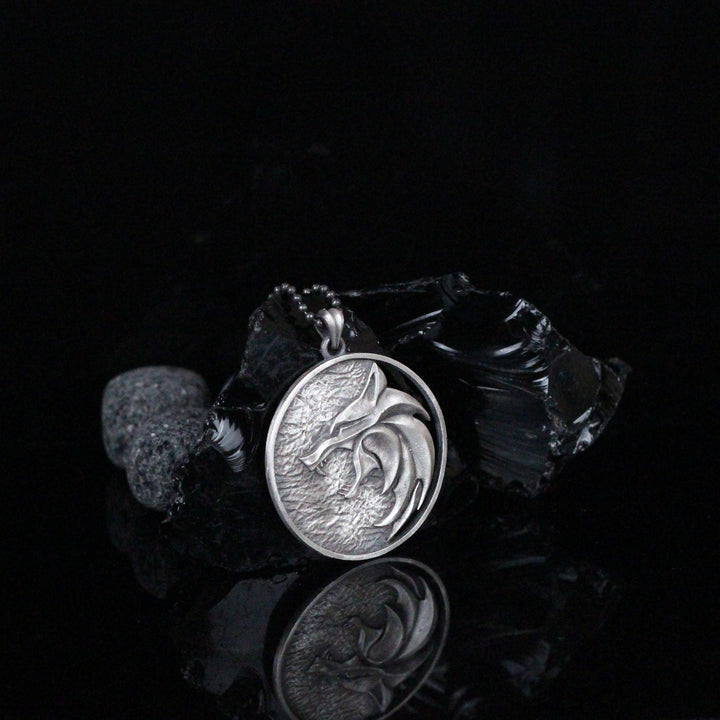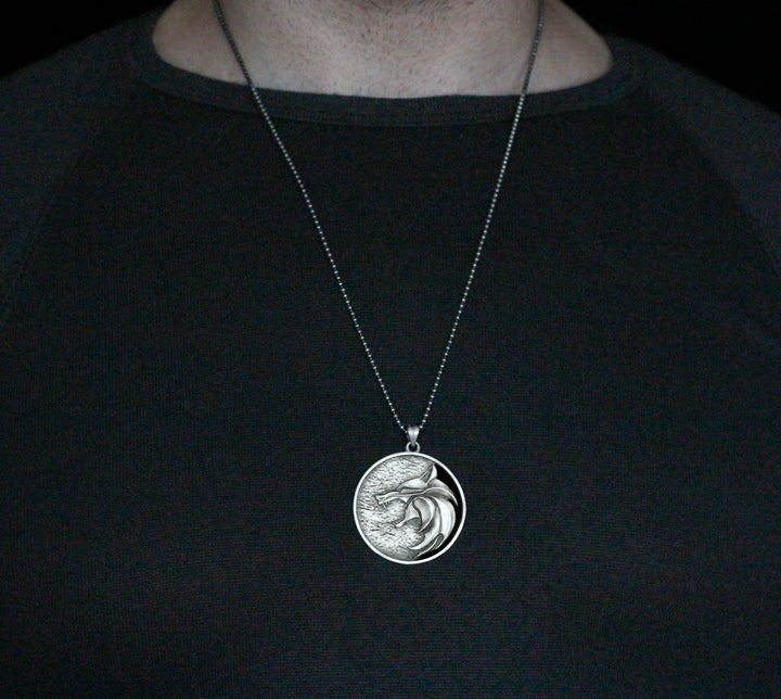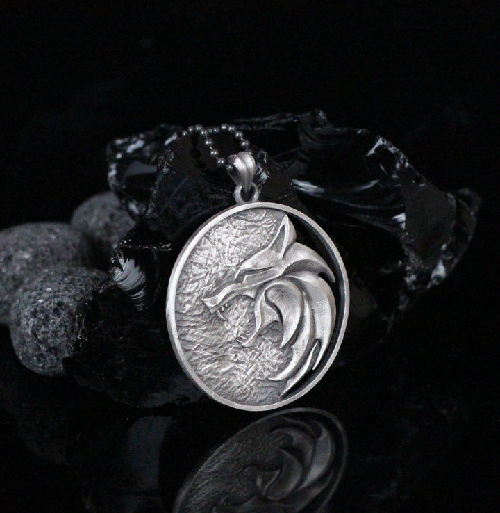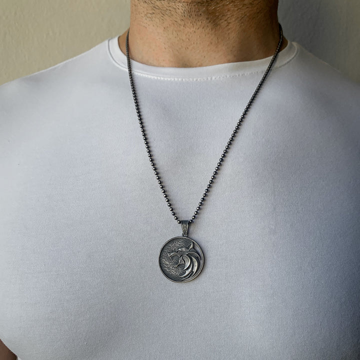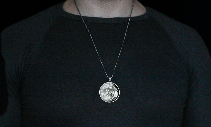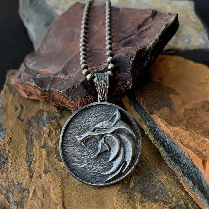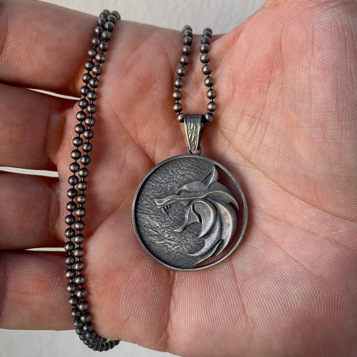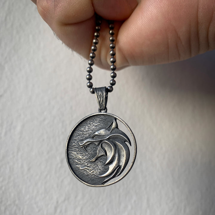 Solid Silver Wolf Men Medallion, Silver Wolf Pendant