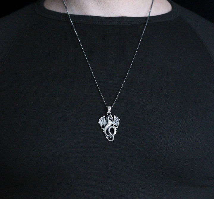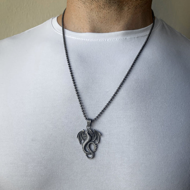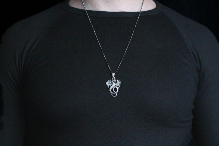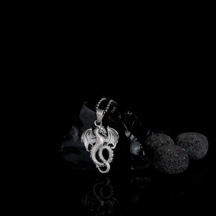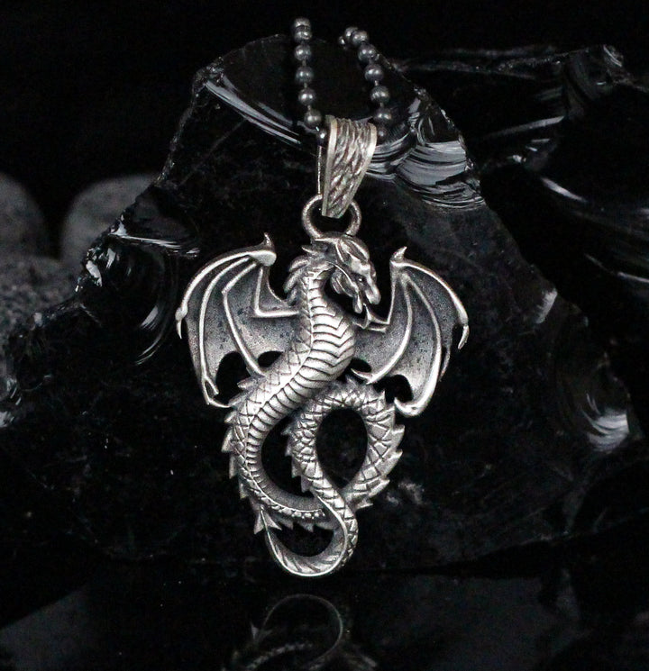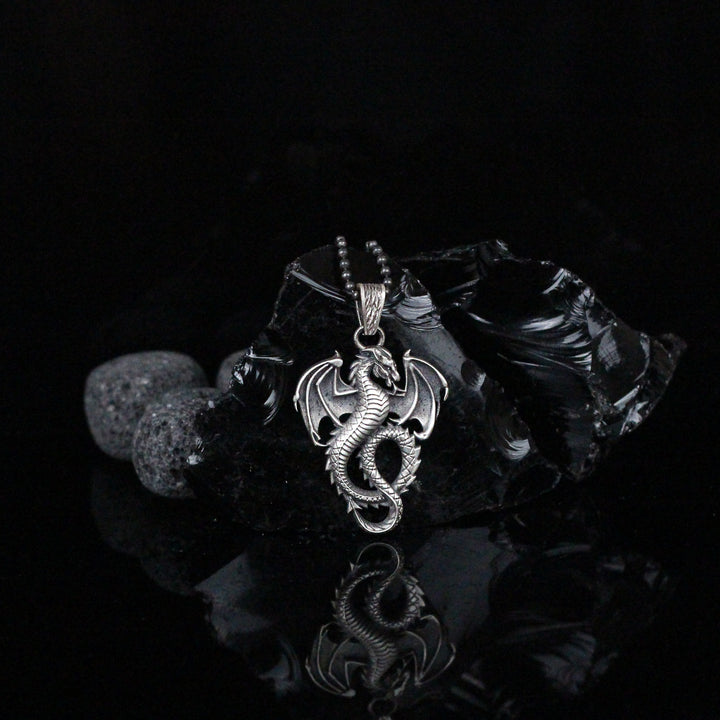 Handmade Fierce Dragon Necklace | 925K Sterling Silver Mythical Necklace for Men