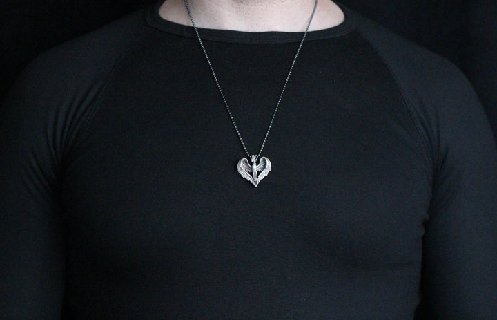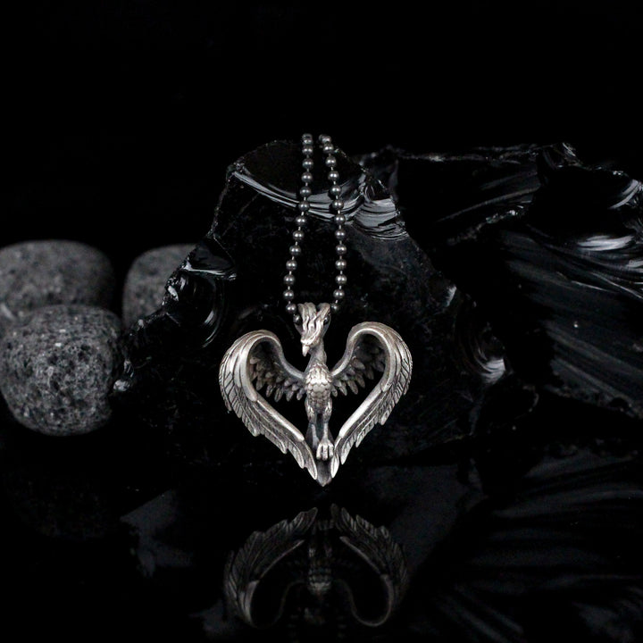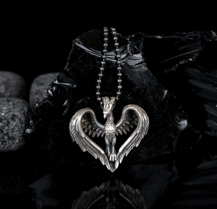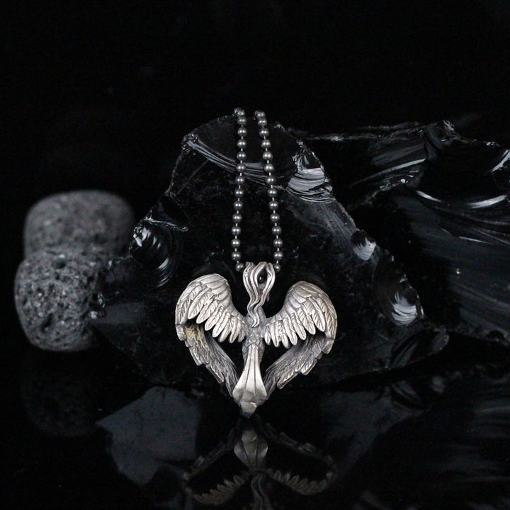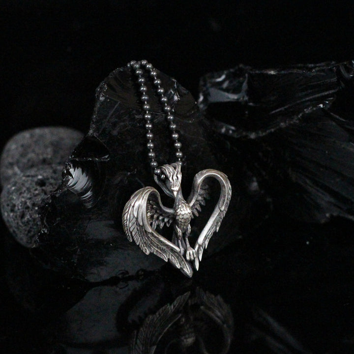Sterling Silver Phoenix Bird Necklace | Mythical Fire Bird Pendant from Greek Mythology