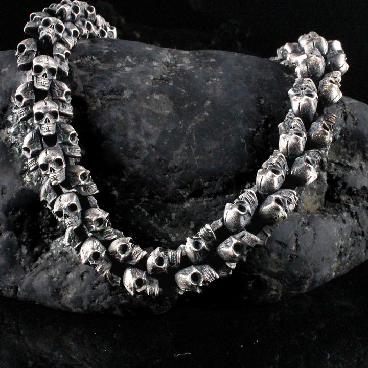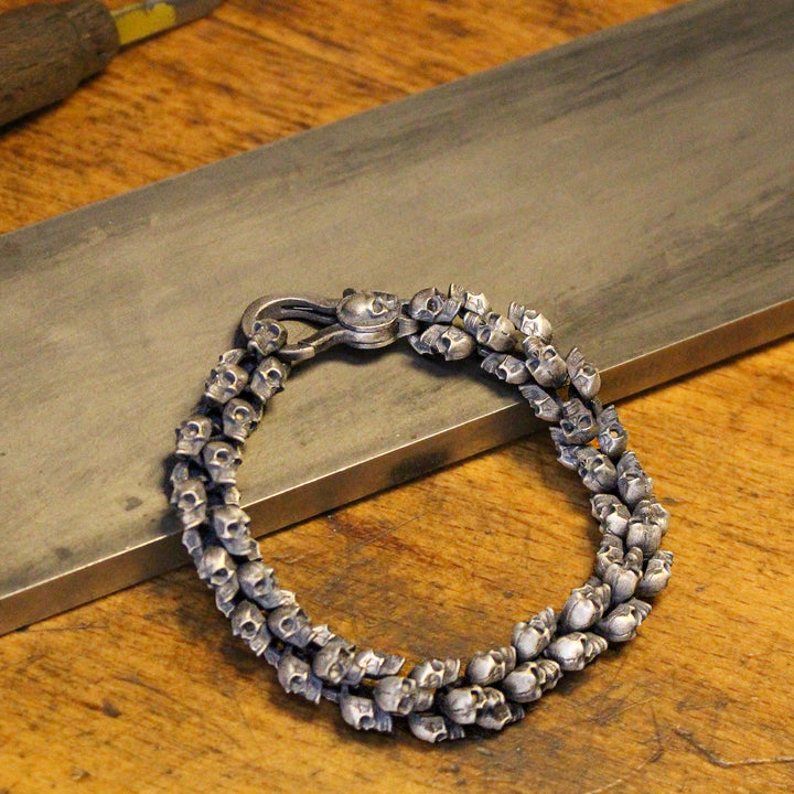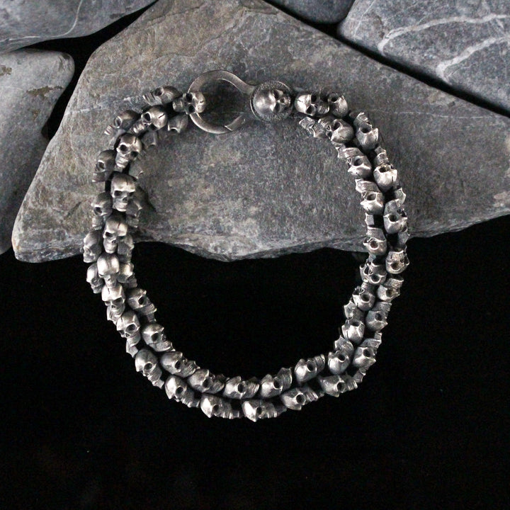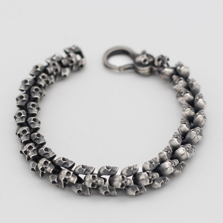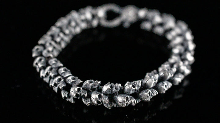 Command attention with the Men’s Skull Bracelet, a striking accessory that fuses rugged style with modern edge. Handcrafted from solid 925 sterling silver, this bold bracelet showcases a double-layered arrangement of finely detailed skull motifs, creating a distinctive look full of attitude and character. Designed for men who value individuality, it’s an ideal choice for daily wear or as a statement piece on special occasions.