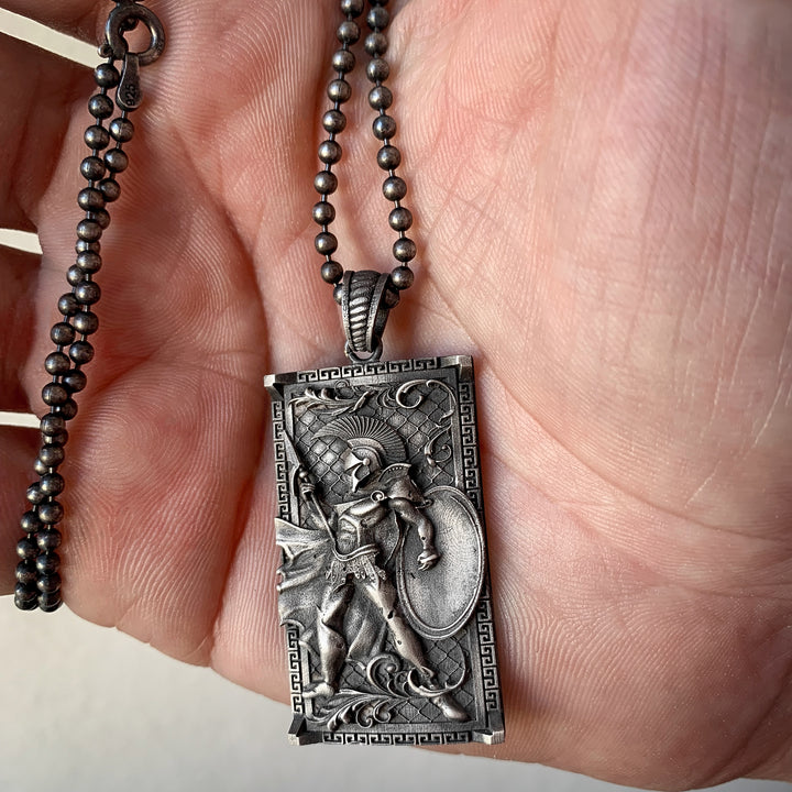Spartan Warrior Necklace in 925K Sterling Silver | Bold Greek Mythology Design Pendant Necklace