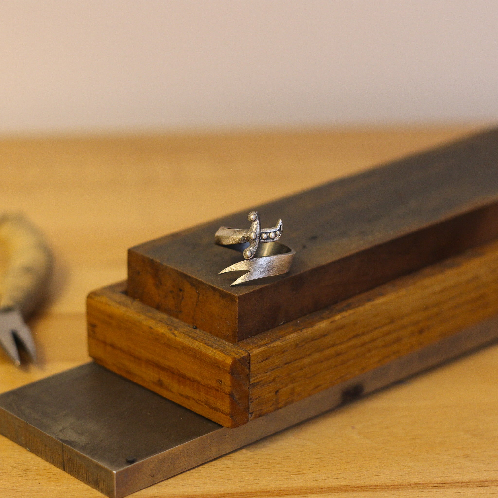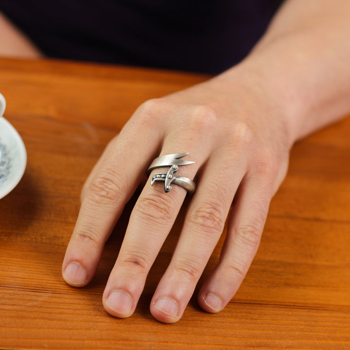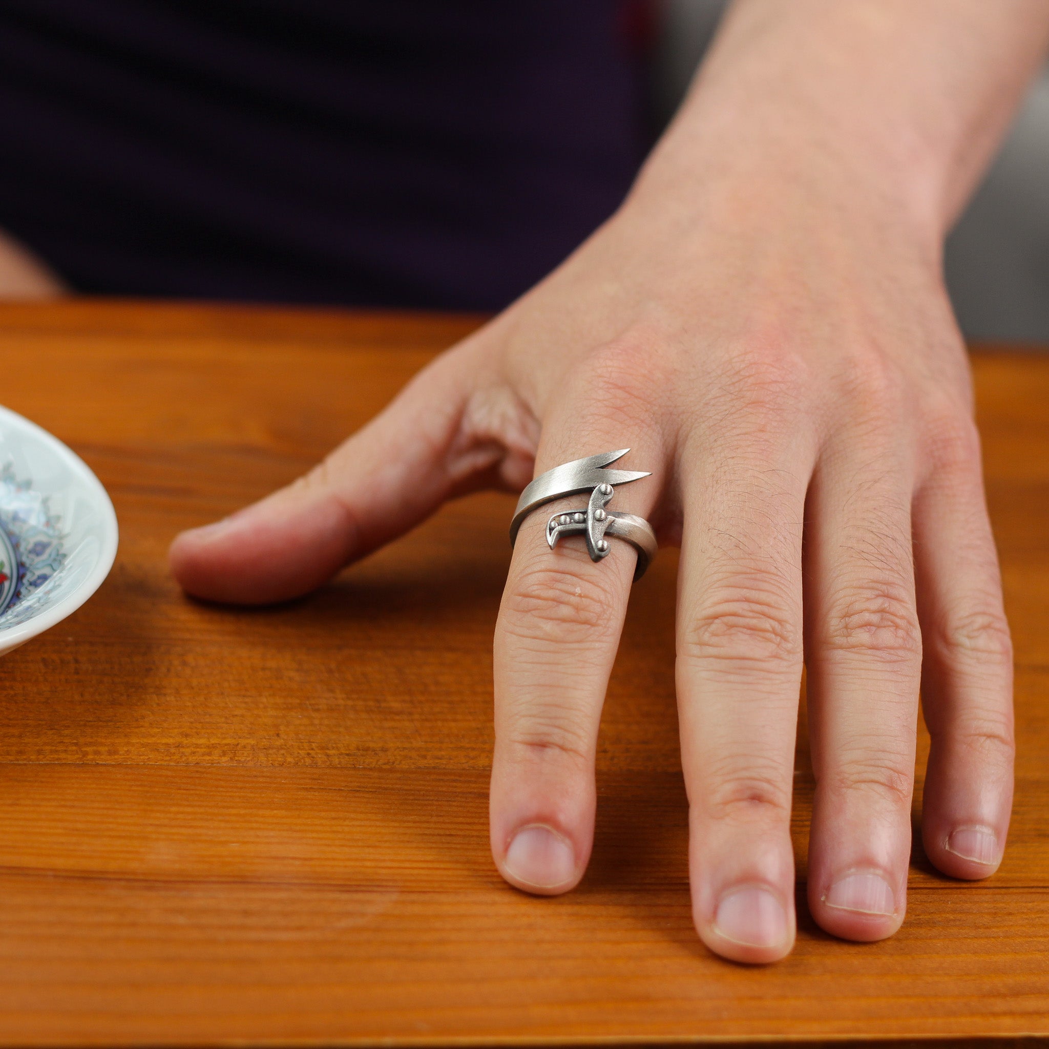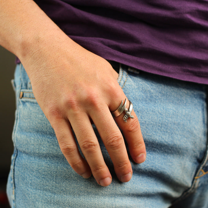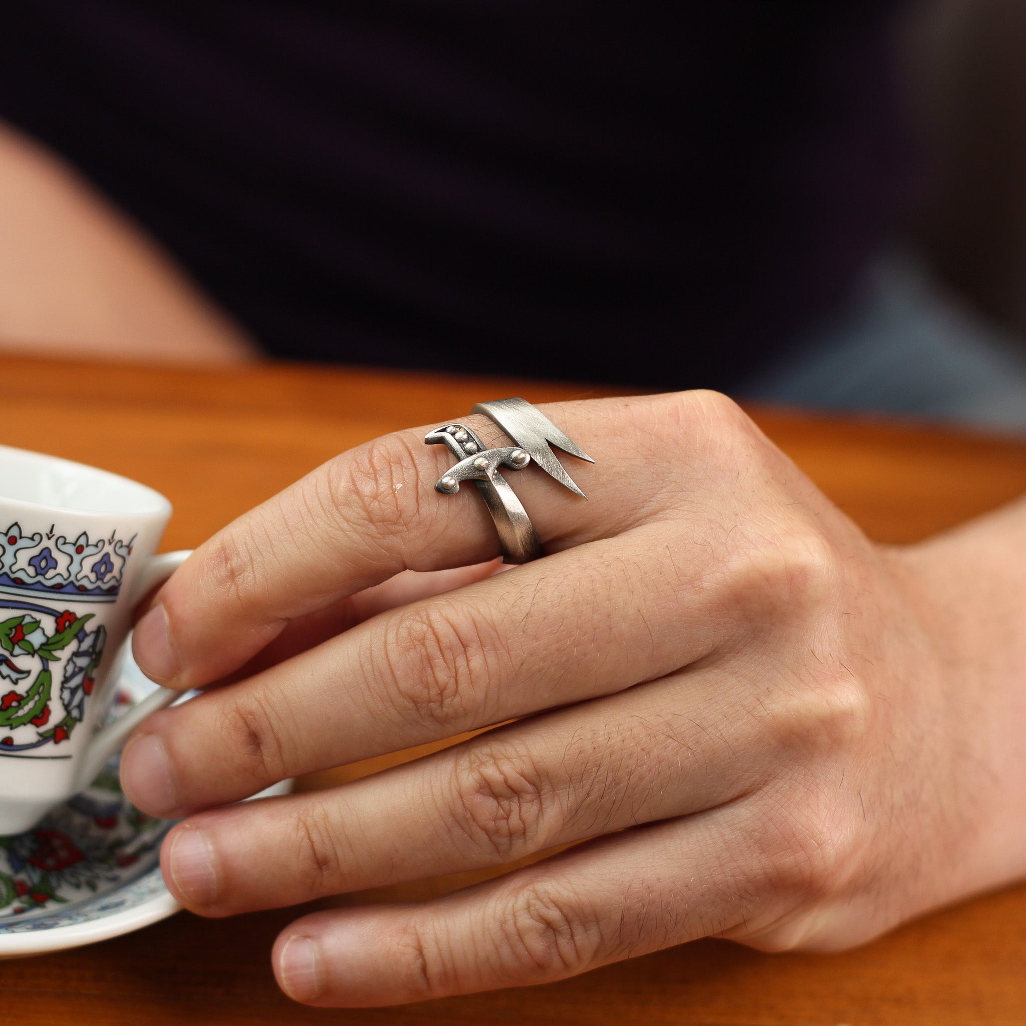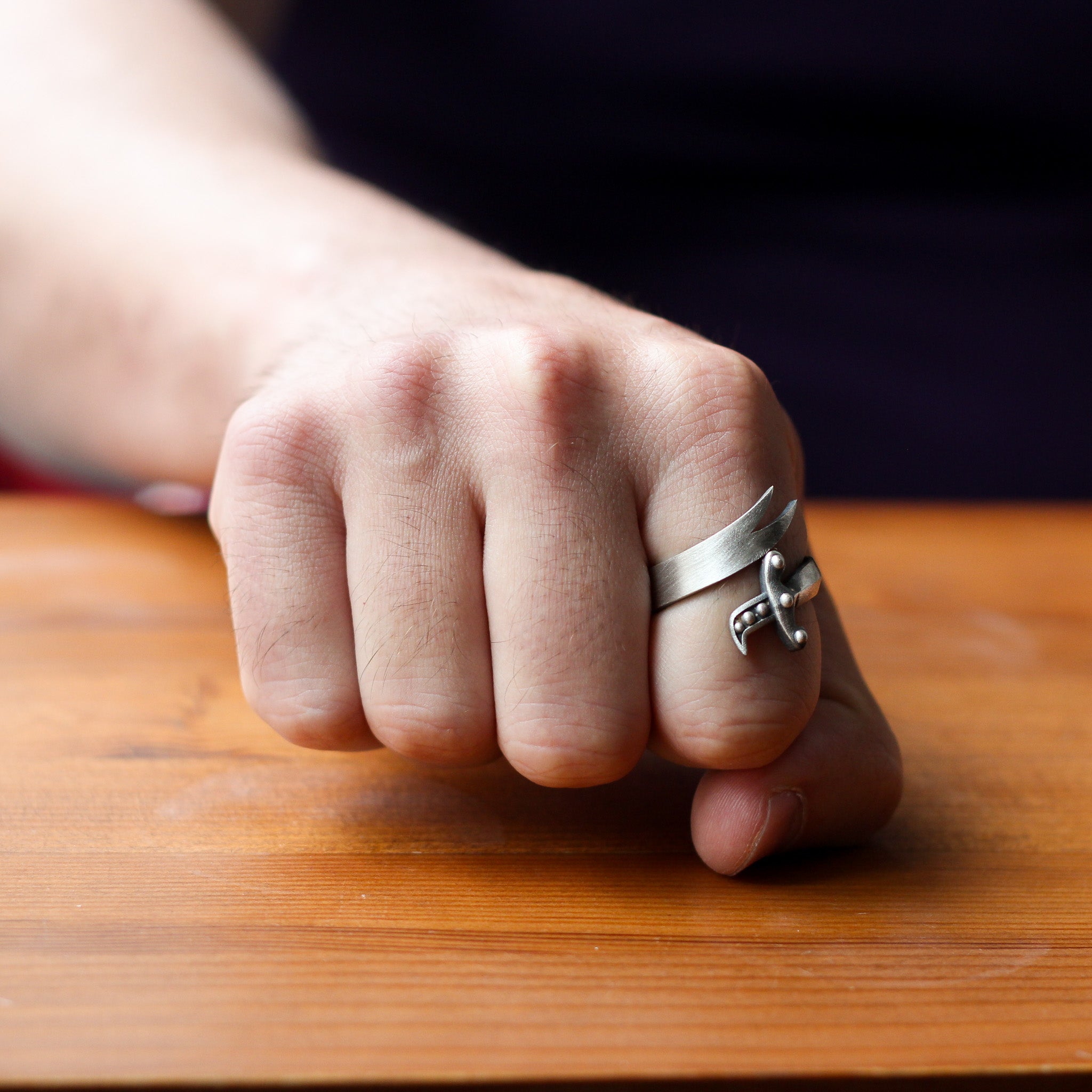 Sterling Silver Large Sword Ring | Bold and Artistic Adjustable Design for Men